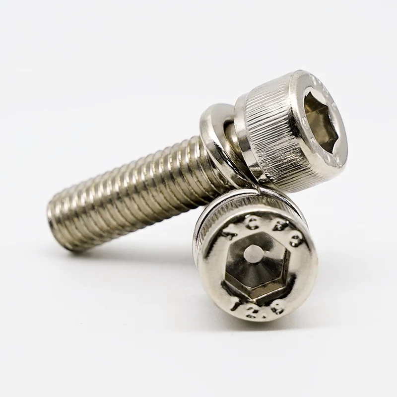 Slovenski Sekrup Tutup Kepala Soket Hex berlapis Nikel JINSIXI dengan Mesin Cuci Pegas menggabungkan sekrup tutup kepala soket DIN 912 dengan mesin cuci pegas yang telah dirakit sebelumnya. Fungsi inti dari mesin cuci pegas adalah untuk memberikan gaya gesekan terus menerus setelah pengencangan, menahan kendor yang disebabkan oleh getaran. Sekrup ini berkinerja lebih baik daripada sekrup pencuci datar biasa di bawah beban dinamis atau kondisi ekspansi dan kontraksi termal.